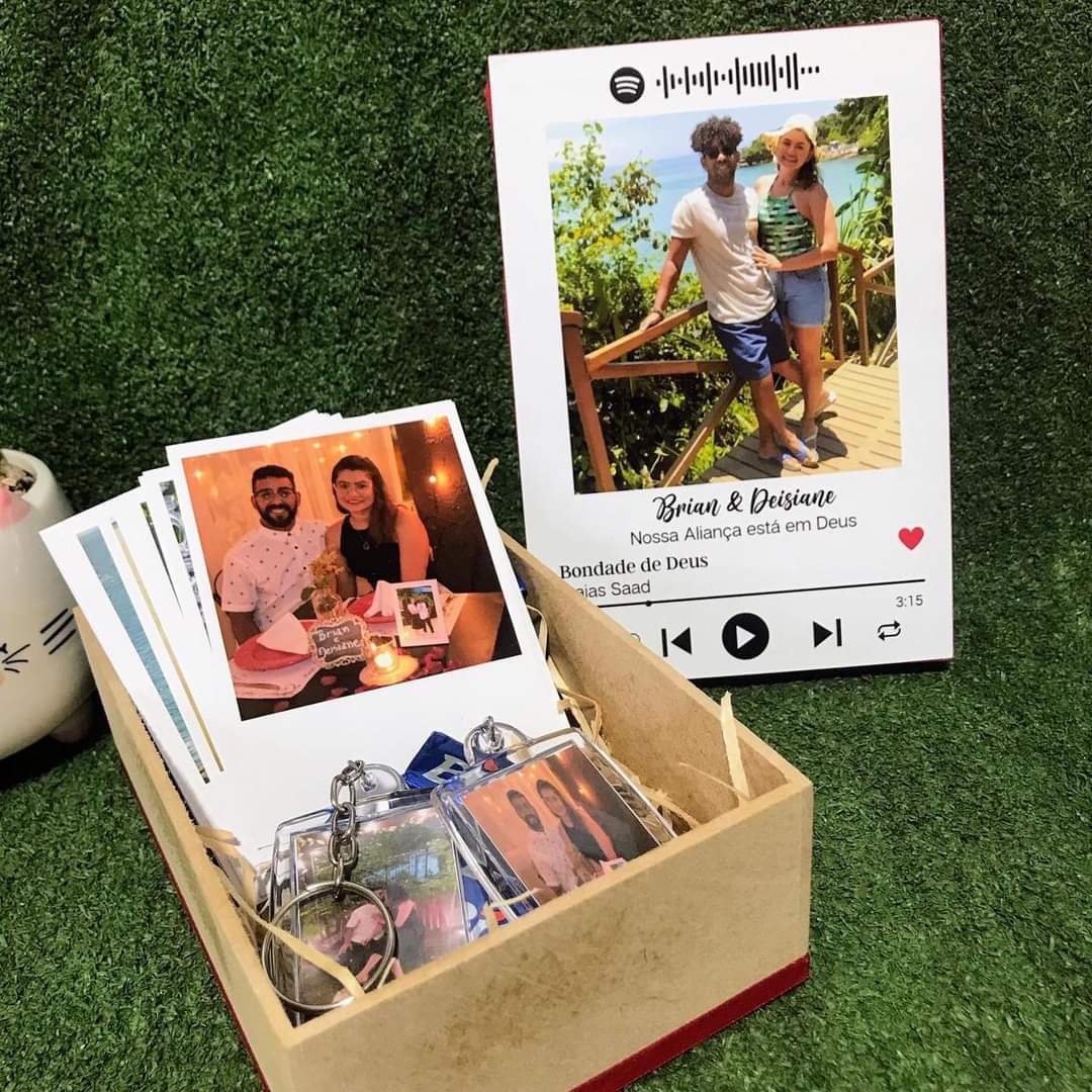 - Caixa de (MDF11x15x6cm) com a tampa personalizada com "foto do casal nome e musica"